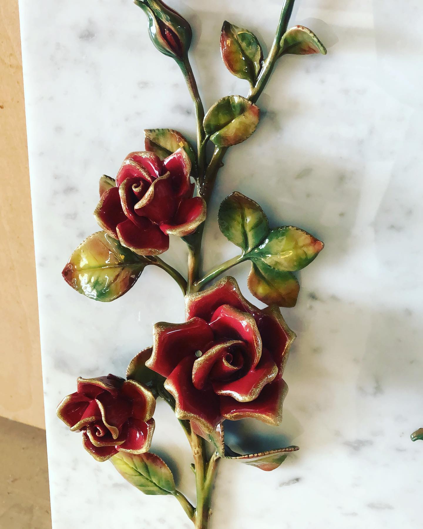 Su ordinazione, il nostro laboratorio realizza fiori cimiteriali per tombe e lapidi, nelle finiture biscuit e lucide con colori a terzo fuoco: articoli di arte funeraria personalizzati resistenti al tempo e agli agenti atmosferici.